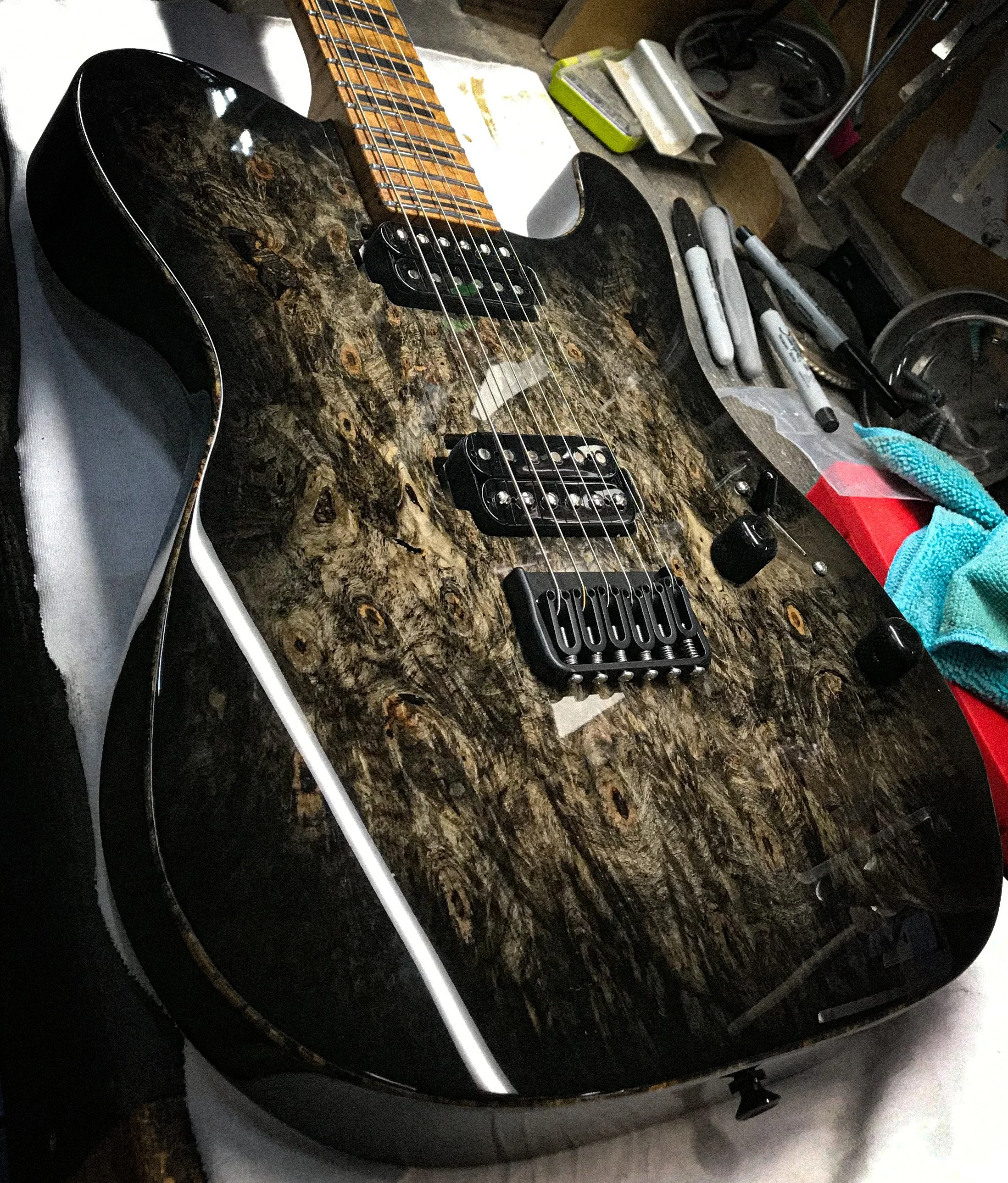 Fully customizable. The Badbone 24 fret can achieve the vintage modern aesthetic, or it can be a fully exotic master built work of art.