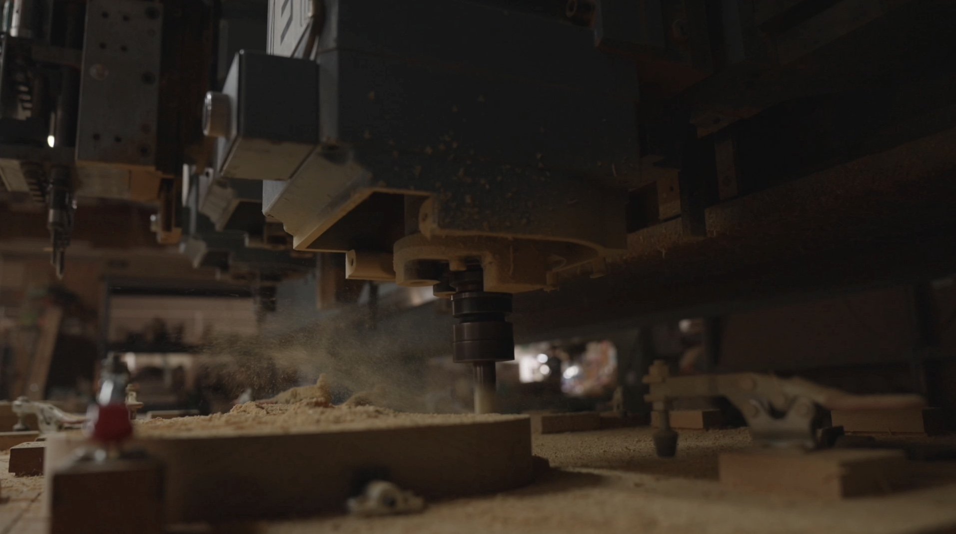Once we find the right lumber it gets chopped to length, glued up for grain match and placed on our CNC router. Our CNC is very large and accurate with a 5’ x 10’ machining area, 4 16HP router heads and 10 drills. It is not a hobbyist machine. We are very specific about what the CNC is used for. We use our hands for features that are based on comfort and feel. Once routing is done you will have a chunky set of pieces ready to become hand-shaped and refined.
